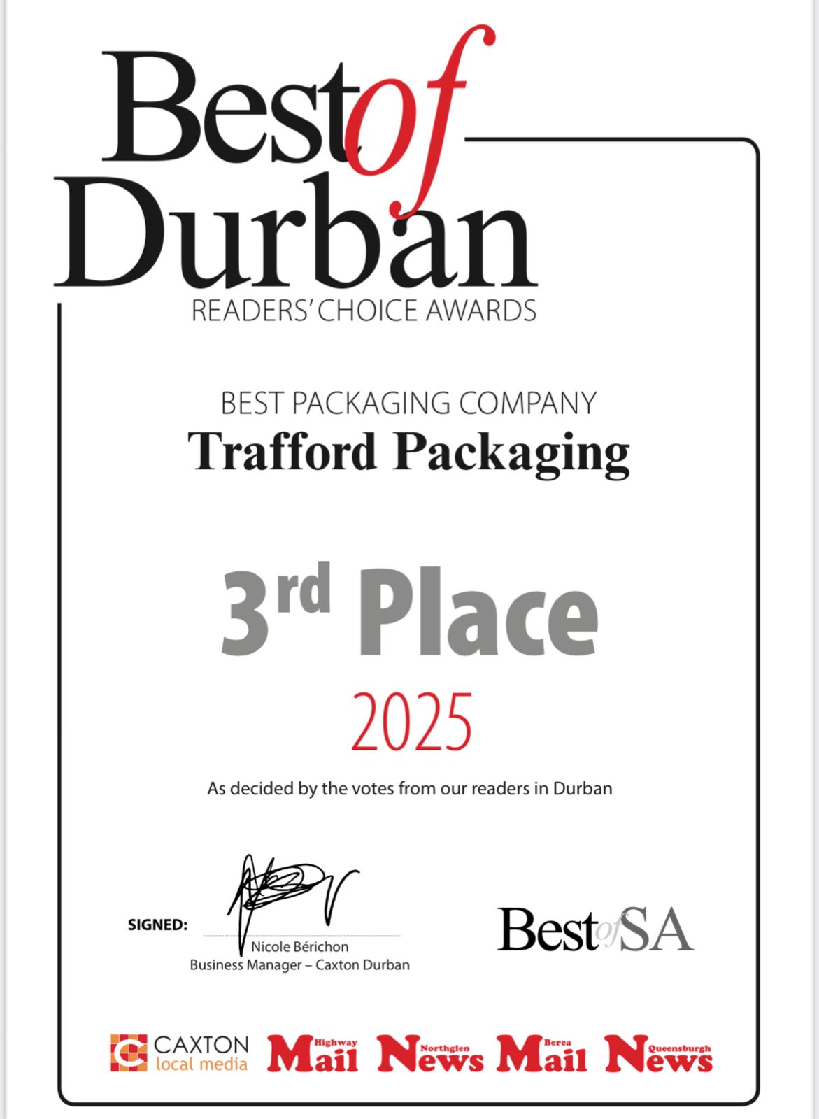 Founded in 2018, Trafford Packaging is a dynamic and forward-thinking company specialising in plastic manufacturing, distribution, and transport logistics. Based in Westmead, Pinetown, and with branches in Gauteng and Cape Town, we have grown rapidly by focusing on excellence, innovation, and exceptional customer service. As a subsidiary of Martin K Holdings, we are committed to delivering reliable, high-quality packaging solutions that meet the diverse needs of our clients.